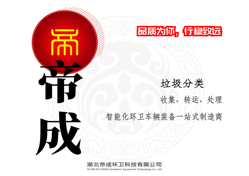 湖北帝成環(huán)衛(wèi)科技有限公司位于編鐘古樂之鄉(xiāng),中國專用汽車之都——湖北省隨州市。成立于2013年,占地面積32600平方米,生產(chǎn)辦公面積14220平方米,現(xiàn)有員工176人,平均年齡36歲,是一家年輕又有活力的公司。六年來致力于城鎮(zhèn)環(huán)衛(wèi)、市政、公路等領域生活垃圾、廚余垃圾、裝修垃圾、污泥垃圾、畜禽養(yǎng)殖糞便垃圾及應急電源設備,應急排澇抗旱設備、污水凈化處理設備、垃圾壓縮設備的研發(fā)、生產(chǎn)和銷售。主要專注于各類垃圾收集清運處理及應急設備兩個領域10個系列,主要產(chǎn)品質(zhì)量水平居國內(nèi)同類產(chǎn)品的領先地位。