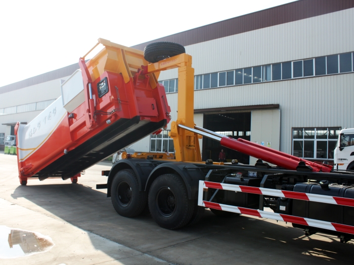 5.更短的工作循環(huán)時間,更高的壓縮效率,減少機(jī)箱每日轉(zhuǎn)運(yùn)次數(shù)降低垃圾運(yùn)營成本,一臺拉臂車輪流轉(zhuǎn)運(yùn)多個移動箱,以配合多個垃圾中轉(zhuǎn)站轉(zhuǎn)運(yùn)作業(yè)需要,因而提高了汽車底盤的使用效率。