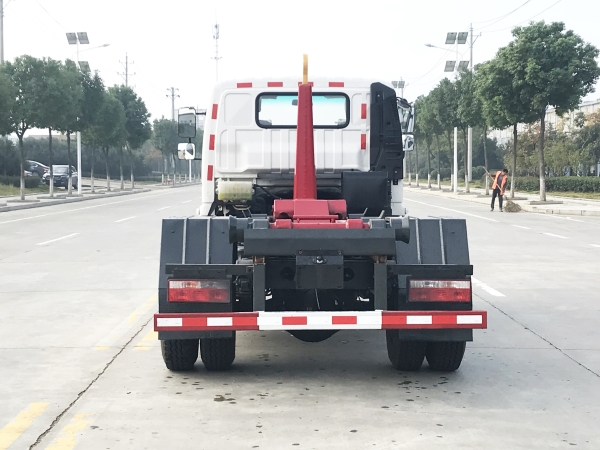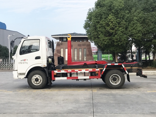 車廂可卸載式垃圾車,又稱勾臂式垃圾車、拉臂式垃圾車。該車廣泛適用與城市街道學(xué)校垃圾處理,可一車配備多個(gè)斗,各個(gè)垃圾點(diǎn)放置多個(gè),帶自卸功能,液壓操作,方便傾倒。在平日里可將車載垃圾箱放置到各個(gè)垃圾收集站,待垃圾收集滿后,該車可直接開赴至垃圾站,通過液壓系統(tǒng)的操控,可將垃圾車后座上加裝的勾臂放下,掛住站內(nèi)垃圾箱前端的連接點(diǎn),將垃圾箱拉至車體的后座上,此時(shí)即可啟動(dòng)車輛,將垃圾運(yùn)送至垃圾處理站內(nèi),進(jìn)行自卸式傾倒。該車主要的優(yōu)點(diǎn)就是可一車配多斗,一輛車就可以維持?jǐn)?shù)個(gè)垃圾收集站的運(yùn)轉(zhuǎn),效率高,且箱體為密封式設(shè)計(jì),不會(huì)造成二次污染。