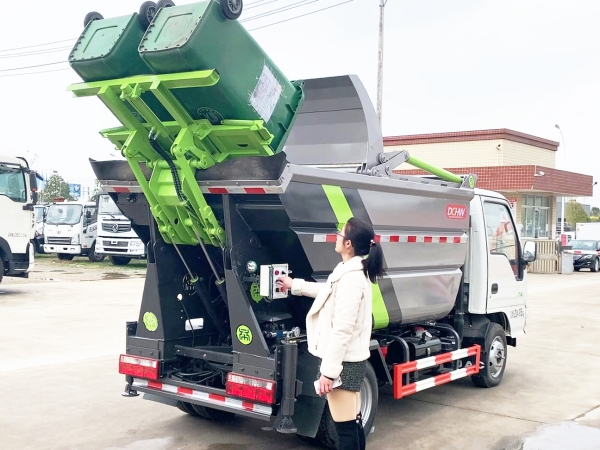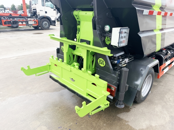 自裝卸式垃圾車在底盤的基礎(chǔ)上,加裝垃圾箱體、連接附件、防護(hù)欄及液壓系統(tǒng)等裝置。具有操作安全、使用性能穩(wěn)定、返修率低、售后服務(wù)及時(shí)周到等特點(diǎn)。本產(chǎn)品主要用于收集與轉(zhuǎn)運(yùn)城市住宅小區(qū)、鄉(xiāng)鎮(zhèn)街道等產(chǎn)生的生活垃圾。整車小巧靈活,行動(dòng)方便,適應(yīng)人流密集的商業(yè)區(qū)域和道路交通情況較差的城鄉(xiāng)地區(qū)。本車配有后掛桶進(jìn)料機(jī)構(gòu),在翻桶處操作,可與120L/240L/660L標(biāo)準(zhǔn)塑料桶對接。整車具有自卸功能,卸料方便。結(jié)構(gòu)結(jié)實(shí)耐腐 船型箱體結(jié)構(gòu)實(shí)現(xiàn)100%無泄漏;刮板進(jìn)料+壓縮 壓縮效率高;高位舉升自卸結(jié)構(gòu),卸料干凈 對接方便;多功能翻桶進(jìn)料機(jī)構(gòu) 進(jìn)料快捷穩(wěn)定;液壓系統(tǒng)穩(wěn)定可靠;自動(dòng)化程度高,電液聯(lián)合控制。