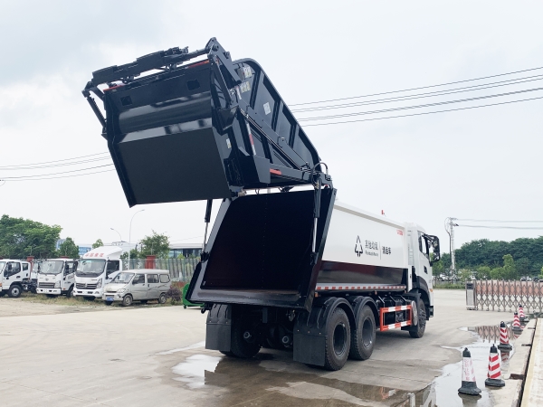 壓縮式垃圾車由密封式垃圾廂、液壓系統(tǒng)、操作系統(tǒng)組成。整車為全密封型,自行壓縮、自行傾倒、壓縮過程中的污水全部進入污水廂,較為徹底的解決了垃圾運輸過程中的二次污染的問題,避免了給人們帶來不便,關(guān)鍵部件采用進口部件,具有壓力大、密封性好、操作方便、安全等優(yōu)點。 可選配后掛桶翻轉(zhuǎn)機構(gòu)或垃圾斗翻轉(zhuǎn)機構(gòu)。 專門用于收集城鎮(zhèn)居民生活垃圾和其他可壓縮垃圾的的環(huán)衛(wèi)專用車輛,壓縮式垃圾車由密封式垃圾箱、液壓系統(tǒng)、操作系統(tǒng)組成。整車為全密封型,自行壓縮、自行傾倒、壓縮過程中的污水全部進入污水箱,較為徹底的解決了垃圾運輸過程中的二次污染的問題,關(guān)鍵元器件采用進口件,具有壓力大、密封性好、操作方便、安全省力等優(yōu)點。 主要有后裝壓縮式垃圾車和測裝壓縮式垃圾車,其中后裝壓縮式垃圾車可選配后掛桶收集裝置、鏟斗收集裝置、擺臂收集裝置、掛鐵通收集裝置,用戶可以根據(jù)不同需要選擇不同的收集裝置。