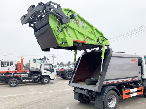 壓縮式垃圾車(chē)由密封式垃圾廂、液壓系統(tǒng)、操作系統(tǒng)組成。整車(chē)為全密封型,自行壓縮、自行傾倒、壓縮過(guò)程中的污水全部進(jìn)入污水廂,較為徹底的解決了垃圾運(yùn)輸過(guò)程中的二次污染的問(wèn)題,避免了給人們帶來(lái)不便,關(guān)鍵部件采用進(jìn)口部件,具有壓力大、密封性好、操作方便、安全等優(yōu)點(diǎn)。 可選配后掛桶翻轉(zhuǎn)機(jī)構(gòu)或垃圾斗翻轉(zhuǎn)機(jī)構(gòu)。 專(zhuān)門(mén)用于收集城鎮(zhèn)居民生活垃圾和其他可壓縮垃圾的的環(huán)衛(wèi)專(zhuān)用車(chē)輛,壓縮式垃圾車(chē)由密封式垃圾箱、液壓系統(tǒng)、操作系統(tǒng)組成。整車(chē)為全密封型,自行壓縮、自行傾倒、壓縮過(guò)程中的污水全部進(jìn)入污水箱,較為徹底的解決了垃圾運(yùn)輸過(guò)程中的二次污染的問(wèn)題,關(guān)鍵元器件采用進(jìn)口件,具有壓力大、密封性好、操作方便、安全省力等優(yōu)點(diǎn)。 主要有后裝壓縮式垃圾車(chē)和測(cè)裝壓縮式垃圾車(chē),其中后裝壓縮式垃圾車(chē)可選配后掛桶收集裝置、鏟斗收集裝置、擺臂收集裝置、掛鐵通收集裝置,用戶(hù)可以根據(jù)不同需要選擇不同的收集裝置。