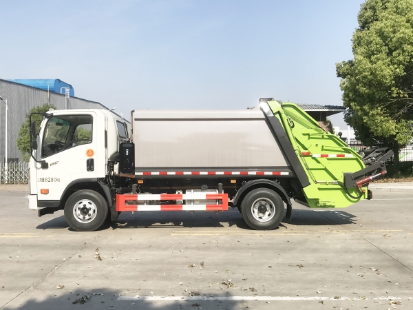壓縮式垃圾車由密封式垃圾廂、液壓系統(tǒng)、操作系統(tǒng)組成。整車為全密封型,自行壓縮、自行傾倒、壓縮過程中的污水全部進入污水廂,較為徹底的解決了垃圾運輸過程中的二次污染的問題,避免了給人們帶來不便,關(guān)鍵部件采用進口部件,具有壓力大、密封性好、操作方便、安全等優(yōu)點。 可選配后掛桶翻轉(zhuǎn)機構(gòu)或垃圾斗翻轉(zhuǎn)機構(gòu)。 專門用于收集城鎮(zhèn)居民生活垃圾和其他可壓縮垃圾的的環(huán)衛(wèi)專用車輛,壓縮式垃圾車由密封式垃圾箱、液壓系統(tǒng)、操作系統(tǒng)組成。整車為全密封型,自行壓縮、自行傾倒、壓縮過程中的污水全部進入污水箱,較為徹底的解決了垃圾運輸過程中的二次污染的問題,關(guān)鍵元器件采用進口件,具有壓力大、密封性好、操作方便、安全省力等優(yōu)點。 主要有后裝壓縮式垃圾車和測裝壓縮式垃圾車,其中后裝壓縮式垃圾車可選配后掛桶收集裝置、鏟斗收集裝置、擺臂收集裝置、掛鐵通收集裝置,用戶可以根據(jù)不同需要選擇不同的收集裝置。