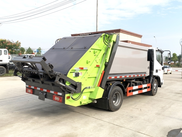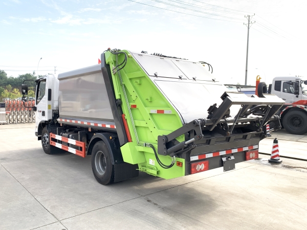壓縮式垃圾車由密封式垃圾廂、液壓系統(tǒng)、操作系統(tǒng)組成。整車為全密封型,自行壓縮、自行傾倒、壓縮過(guò)程中的污水全部進(jìn)入污水廂,較為徹底的解決了垃圾運(yùn)輸過(guò)程中的二次污染的問(wèn)題,避免了給人們帶來(lái)不便,關(guān)鍵部件采用進(jìn)口部件,具有壓力大、密封性好、操作方便、安全等優(yōu)點(diǎn)。 可選配后掛桶翻轉(zhuǎn)機(jī)構(gòu)或垃圾斗翻轉(zhuǎn)機(jī)構(gòu)。 專門(mén)用于收集城鎮(zhèn)居民生活垃圾和其他可壓縮垃圾的的環(huán)衛(wèi)專用車輛,壓縮式垃圾車由密封式垃圾箱、液壓系統(tǒng)、操作系統(tǒng)組成。整車為全密封型,自行壓縮、自行傾倒、壓縮過(guò)程中的污水全部進(jìn)入污水箱,較為徹底的解決了垃圾運(yùn)輸過(guò)程中的二次污染的問(wèn)題,關(guān)鍵元器件采用進(jìn)口件,具有壓力大、密封性好、操作方便、安全省力等優(yōu)點(diǎn)。 主要有后裝壓縮式垃圾車和測(cè)裝壓縮式垃圾車,其中后裝壓縮式垃圾車可選配后掛桶收集裝置、鏟斗收集裝置、擺臂收集裝置、掛鐵通收集裝置,用戶可以根據(jù)不同需要選擇不同的收集裝置。
