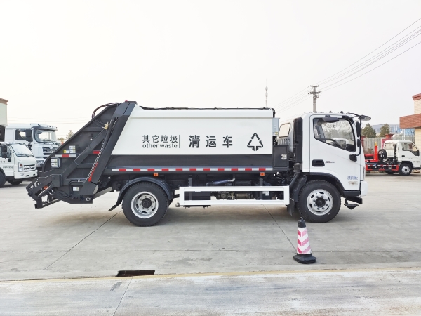 壓縮式垃圾車由密封式垃圾廂、液壓系統(tǒng)、操作系統(tǒng)組成。整車為全密封型,自行壓縮、自行傾倒、壓縮過程中的污水全部進(jìn)入污水廂,較為徹底的解決了垃圾運(yùn)輸過程中的二次污染的問題,避免了給人們帶來不便,關(guān)鍵部件采用進(jìn)口部件,具有壓力大、密封性好、操作方便、安全等優(yōu)點(diǎn)。 可選配后掛桶翻轉(zhuǎn)機(jī)構(gòu)或垃圾斗翻轉(zhuǎn)機(jī)構(gòu)。 專門用于收集城鎮(zhèn)居民生活垃圾和其他可壓縮垃圾的的環(huán)衛(wèi)專用車輛,壓縮式垃圾車由密封式垃圾箱、液壓系統(tǒng)、操作系統(tǒng)組成。整車為全密封型,自行壓縮、自行傾倒、壓縮過程中的污水全部進(jìn)入污水箱,較為徹底的解決了垃圾運(yùn)輸過程中的二次污染的問題,關(guān)鍵元器件采用進(jìn)口件,具有壓力大、密封性好、操作方便、安全省力等優(yōu)點(diǎn)。 主要有后裝壓縮式垃圾車和測裝壓縮式垃圾車,其中后裝壓縮式垃圾車可選配后掛桶收集裝置、鏟斗收集裝置、擺臂收集裝置、掛鐵通收集裝置,用戶可以根據(jù)不同需要選擇不同的收集裝置。