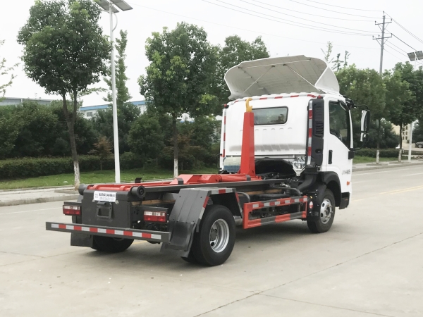 車廂可卸載式垃圾車,又稱勾臂式垃圾車、拉臂式垃圾車。該車廣泛適用與城市街道學校垃圾處理,可一車配備多個斗,各個垃圾點放置多個,帶自卸功能,液壓操作,方便傾倒。在平日里可將車載垃圾箱放置到各個垃圾收集站,待垃圾收集滿后,該車可直接開赴至垃圾站,通過液壓系統(tǒng)的操控,可將垃圾車后座上加裝的勾臂放下,掛住站內(nèi)垃圾箱前端的連接點,將垃圾箱拉至車體的后座上,此時即可啟動車輛,將垃圾運送至垃圾處理站內(nèi),進行自卸式傾倒。該車主要的優(yōu)點就是可一車配多斗,一輛車就可以維持數(shù)個垃圾收集站的運轉(zhuǎn),效率高,且箱體為密封式設計,不會造成二次污染。