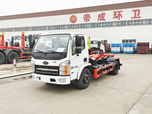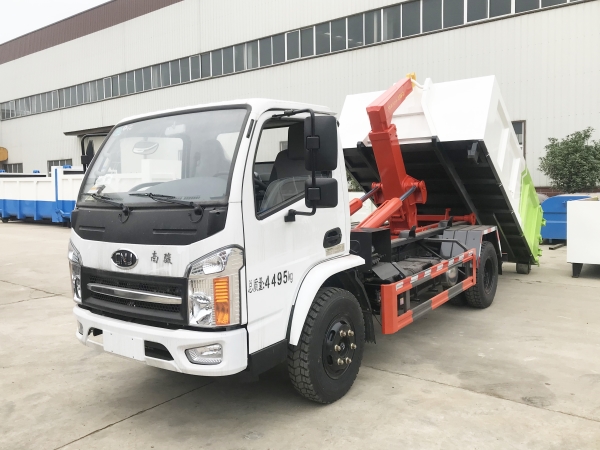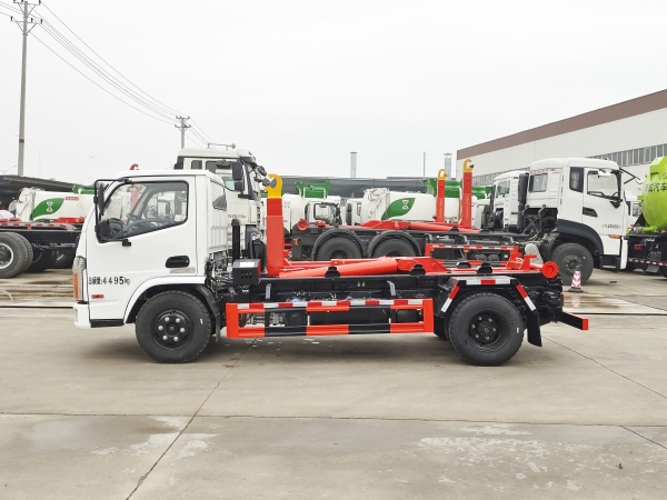 車廂可卸載式垃圾車,又稱勾臂式垃圾車、拉臂式垃圾車。該車廣泛適用與城市街道學(xué)校垃圾處理,可一車配備多個斗,各個垃圾點放置多個,帶自卸功能,液壓操作,方便傾倒。在平日里可將車載垃圾箱放置到各個垃圾收集站,待垃圾收集滿后,該車可直接開赴至垃圾站,通過液壓系統(tǒng)的操控,可將垃圾車后座上加裝的勾臂放下,掛住站內(nèi)垃圾箱前端的連接點,將垃圾箱拉至車體的后座上,此時即可啟動車輛,將垃圾運送至垃圾處理站內(nèi),進行自卸式傾倒。該車主要的優(yōu)點就是可一車配多斗,一輛車就可以維持數(shù)個垃圾收集站的運轉(zhuǎn),效率高,且箱體為密封式設(shè)計,不會造成二次污染。