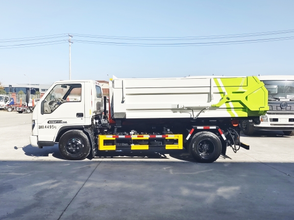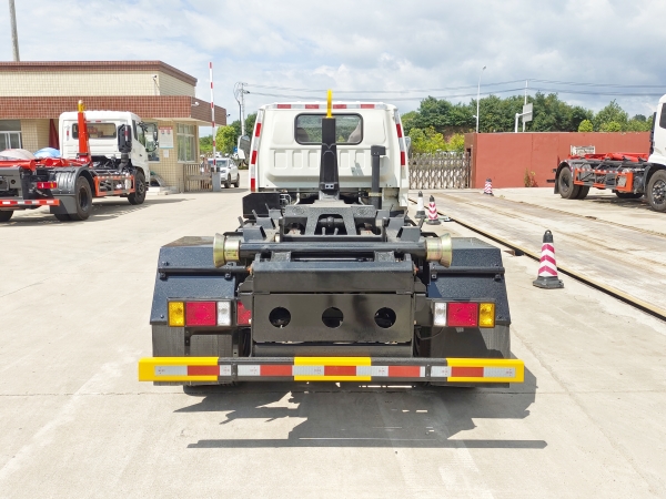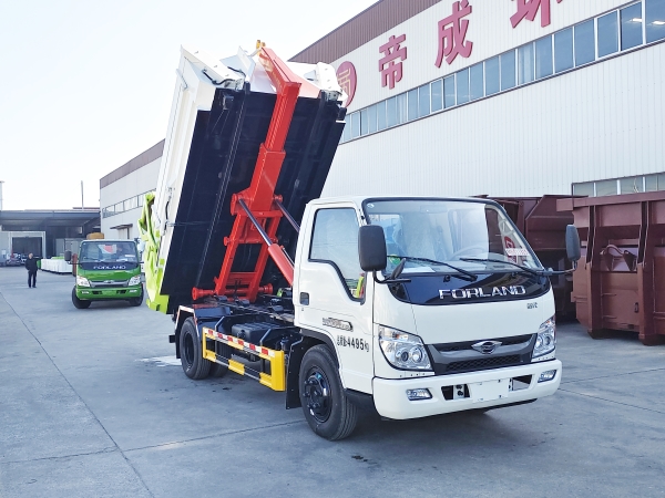 車廂可卸載式垃圾車,又稱勾臂式垃圾車、拉臂式垃圾車。該車廣泛適用與城市街道學(xué)校垃圾處理,可一車配備多個斗,各個垃圾點放置多個,帶自卸功能,液壓操作,方便傾倒。在平日里可將車載垃圾箱放置到各個垃圾收集站,待垃圾收集滿后,該車可直接開赴至垃圾站,通過液壓系統(tǒng)的操控,可將垃圾車后座上加裝的勾臂放下,掛住站內(nèi)垃圾箱前端的連接點,將垃圾箱拉至車體的后座上,此時即可啟動車輛,將垃圾運送至垃圾處理站內(nèi),進(jìn)行自卸式傾倒。該車主要的優(yōu)點就是可一車配多斗,一輛車就可以維持?jǐn)?shù)個垃圾收集站的運轉(zhuǎn),效率高,且箱體為密封式設(shè)計,不會造成二次污染。