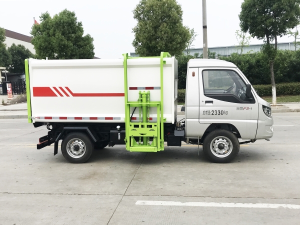 自裝卸式垃圾車是收集、中轉(zhuǎn)清理運(yùn)輸垃圾,避免二次污染的新型環(huán)衛(wèi)車輛,其主要特點(diǎn)是垃圾收集方式簡(jiǎn)便、高效、環(huán)保性好,整車?yán)眯矢?,廣泛適用于環(huán)衛(wèi)、市政、物業(yè)小區(qū)、垃圾多而集中的居民區(qū)、城市街道垃圾處理,均具有密封自卸功能,液壓操作,傾卸垃圾方便。 在底盤的基礎(chǔ)上,加裝垃圾箱體、連接附件、防護(hù)欄及液壓系統(tǒng)等裝置。具有操作安全、使用性能穩(wěn)定、返修率低、售后服務(wù)及時(shí)周到等特點(diǎn)。本產(chǎn)品主要用于收集與轉(zhuǎn)運(yùn)城市住宅小區(qū)、鄉(xiāng)鎮(zhèn)街道等產(chǎn)生的生活垃圾。整車小巧靈活,行動(dòng)方便,適應(yīng)人流密集的商業(yè)區(qū)域和道路交通情況較差的城鄉(xiāng)地區(qū)。本車配有側(cè)掛桶進(jìn)料機(jī)構(gòu),在翻桶處操作,可與120L/240L標(biāo)準(zhǔn)塑料桶對(duì)接。整車具有自卸功能,卸料方便。