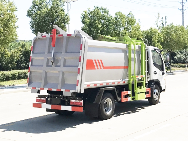 自裝卸式垃圾車是收集、中轉(zhuǎn)清理運(yùn)輸垃圾,避免二次污染的新型環(huán)衛(wèi)車輛,其主要特點(diǎn)是垃圾收集方式簡便、高效、環(huán)保性好,整車?yán)眯矢?,廣泛適用于環(huán)衛(wèi)、市政、物業(yè)小區(qū)、垃圾多而集中的居民區(qū)、城市街道垃圾處理,均具有密封自卸功能,液壓操作,傾卸垃圾方便。 在底盤的基礎(chǔ)上,加裝垃圾箱體、連接附件、防護(hù)欄及液壓系統(tǒng)等裝置。具有操作安全、使用性能穩(wěn)定、返修率低、售后服務(wù)及時(shí)周到等特點(diǎn)。本產(chǎn)品主要用于收集與轉(zhuǎn)運(yùn)城市住宅小區(qū)、鄉(xiāng)鎮(zhèn)街道等產(chǎn)生的生活垃圾。整車小巧靈活,行動(dòng)方便,適應(yīng)人流密集的商業(yè)區(qū)域和道路交通情況較差的城鄉(xiāng)地區(qū)。本車配有側(cè)掛桶進(jìn)料機(jī)構(gòu),在翻桶處操作,可與120L/240L標(biāo)準(zhǔn)塑料桶對接。整車具有自卸功能,卸料方便。